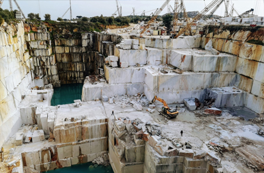 Verschiedene Natursteine wie schwarzer Marmor, cremefarbener Marmor, weißer Marmor und viele andere Bausteine werden in der Bau- und Innenraumgestaltung eingesetzt.
